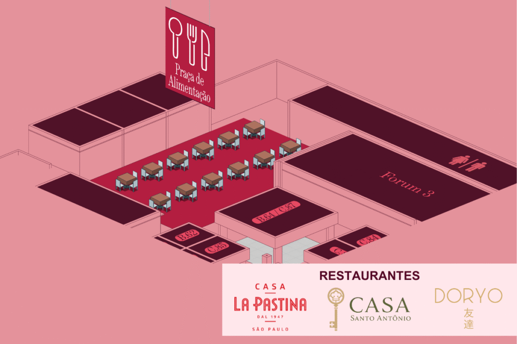 O espaço terá três renomados estabelecimentos: Casa La Pastina, Casa Santo Antônio e Doryo Sushi. Cada um deles oferece uma proposta distinta, capaz de atender diferentes paladares. O espaço foi pensado para que os participantes possam se alimentar de forma rápida, mas sem abrir mão da qualidade e da variedade.